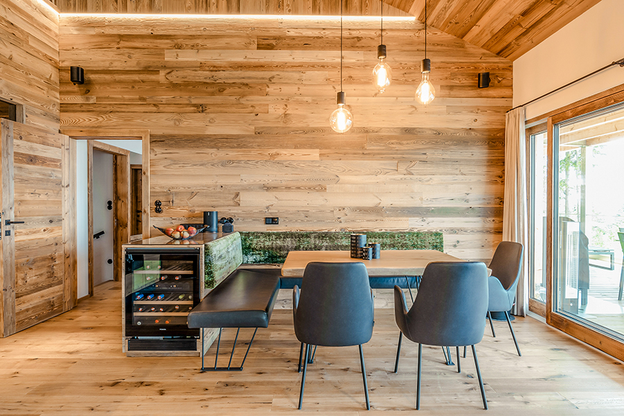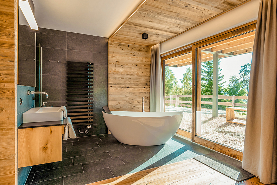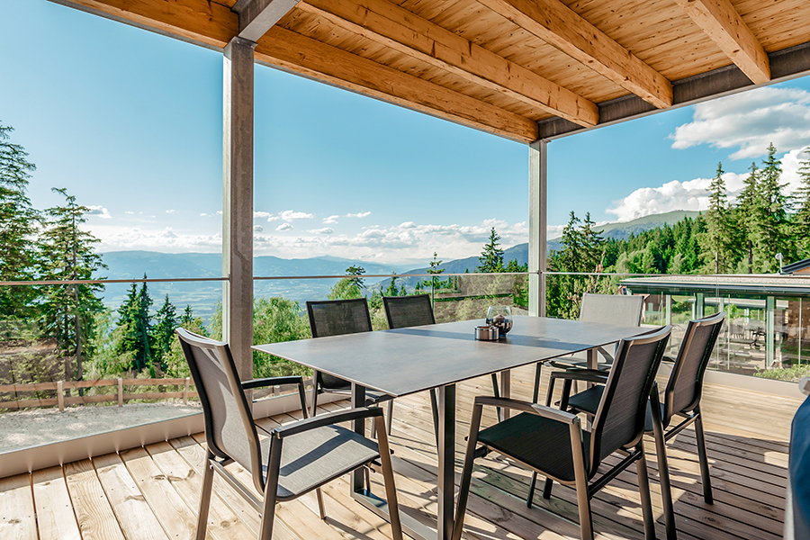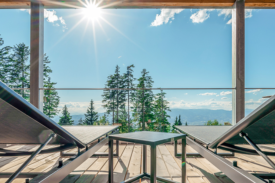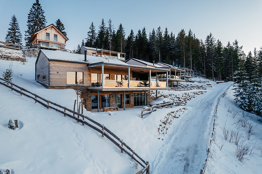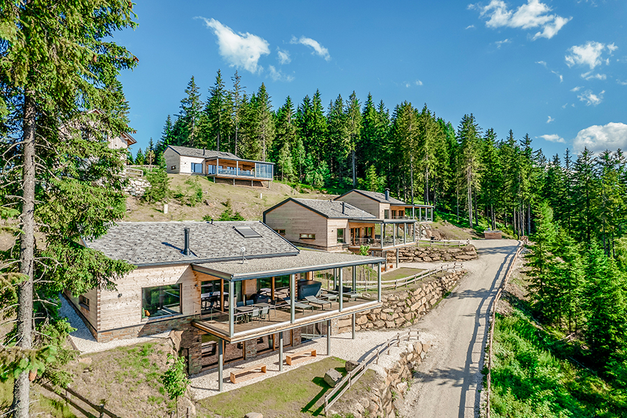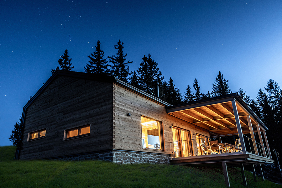 Fernab vom Massentourismus sind unsere Chalets umgeben von endlos scheinenden Wäldern. Zwischen den wohl größten Pflanzen der Erde - den Bäumen und den Menschen besteht eine tiefe Verbundenheit. Die authentische Natur der Brandlalm spüren Sie auch in den Chalets. So wurde bei der Gestaltung großer Wert auf natürliche Materialien und hochwertige Ausstattung gelegt. Die vier Chalets in traumhafter Lage eignen sich für 2 bis 6 Personen (bei Bedarf auch bis zu 10 Personen). Alle Häuser haben eine voll ausgestattete, großzügige Wohnküche mit Panoramablick (bestehend aus einer Küche mit Kochinsel und einem gemütlichen Wohnraum mit Kamin), 2 Badezimmern, zwei Toiletten, 2 oder 3 Schlafzimmern und eine Panorama-Sauna mit eigenem Wohlfühlbereich. Auf der 50m² großen Panorama-Terrasse befindet sich ein Whirlpool, von dem aus Sie wunderbar die Sterne sehen können.