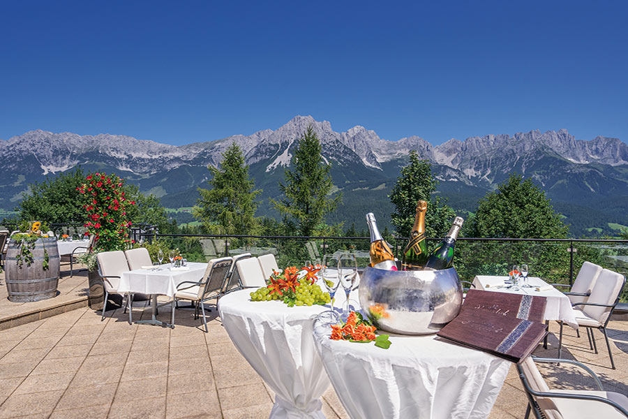 Zur Ruhe kommen, Energiereserven auftanken und die wunderschöne Natur rund um den Wilden Kaiser erleben und genießen. Das Hotel Kaiserhof 5 Sterne Superior Hotel in Ellmau bietet Erholung "PUR" für all jene, die sich eine ganz besondere Auszeit nehmen wollen. In traumhaft ruhiger Lage auf einem Sonnenplateau hoch über Ellmau erleben Sie die perfekte Kombination aus Wohlfühlen & kulinarischem Genuss. Dazu ein atemberaubender Blick von der 300 m² großen Panoramaterrasse auf das schönste Tiroler Bergmassiv - den Wilden Kaiser.